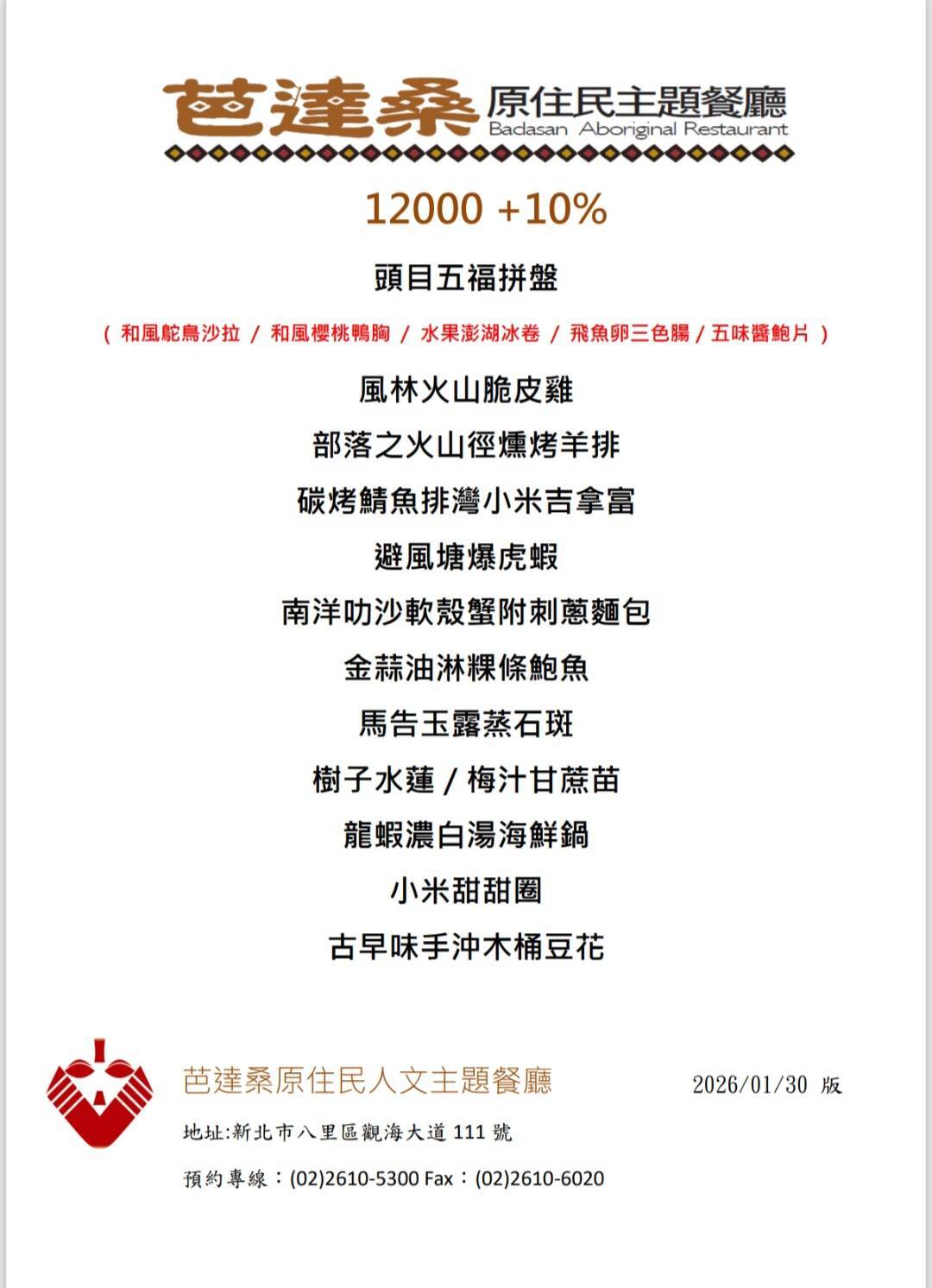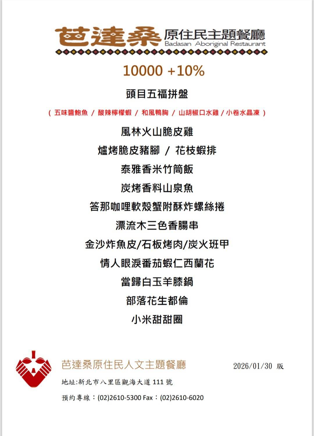 芭達桑原民餐廳 - 互動數位菜單